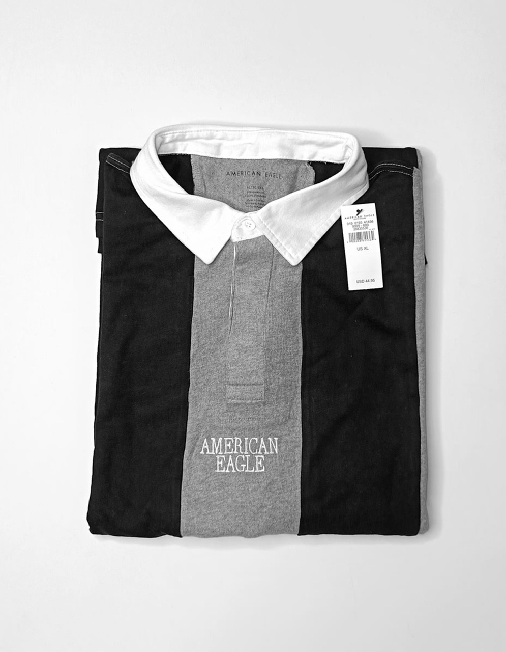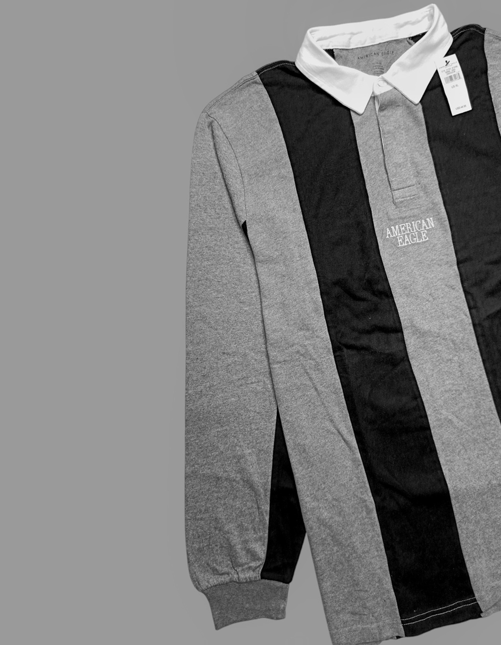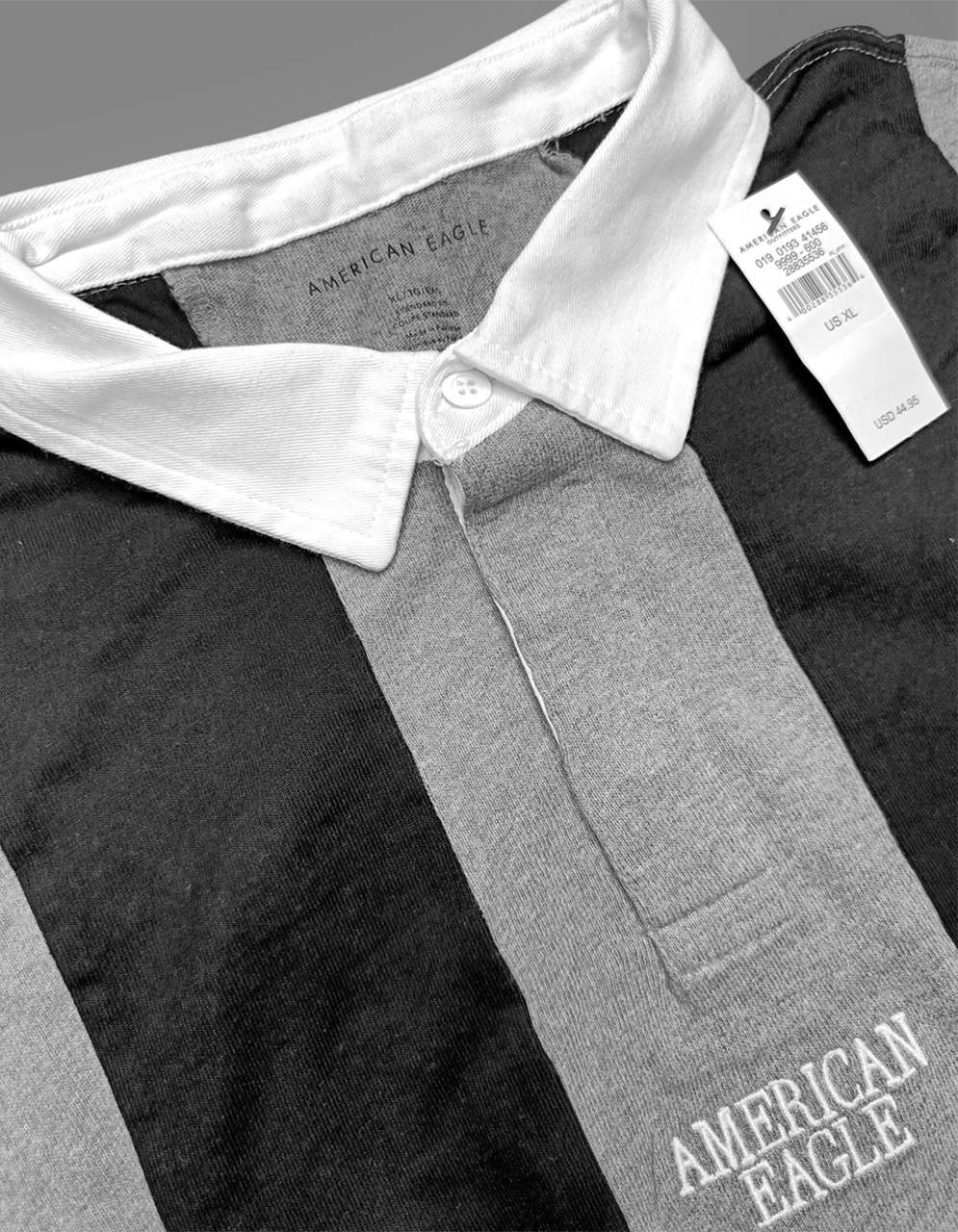 - تيشرت بولو من امريكان ايجل بخطوط طولية و شعار مطرز عالصدر بماتريال قطن هيدفيك فالشتاء صنع فى باكستان