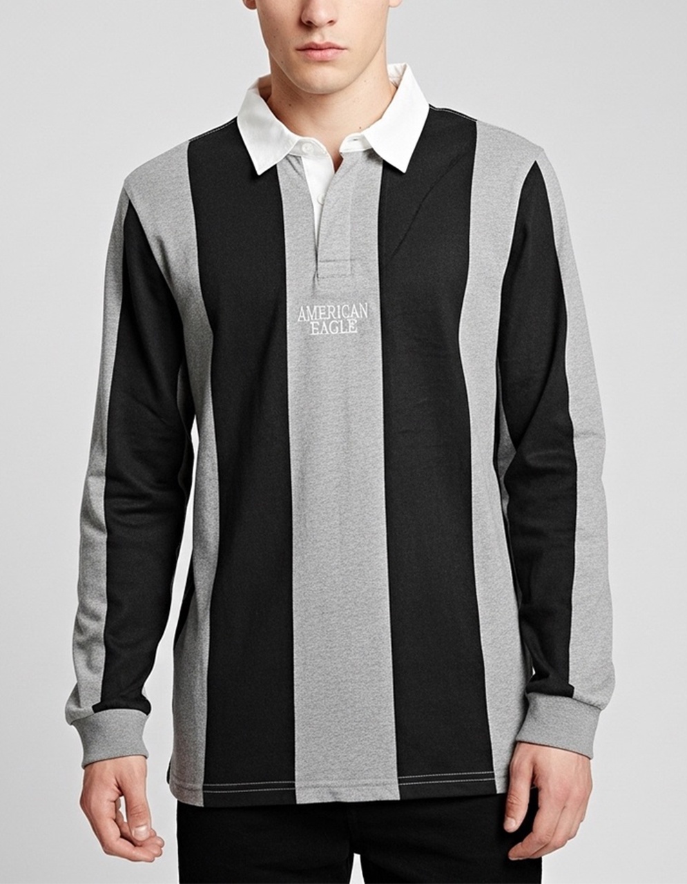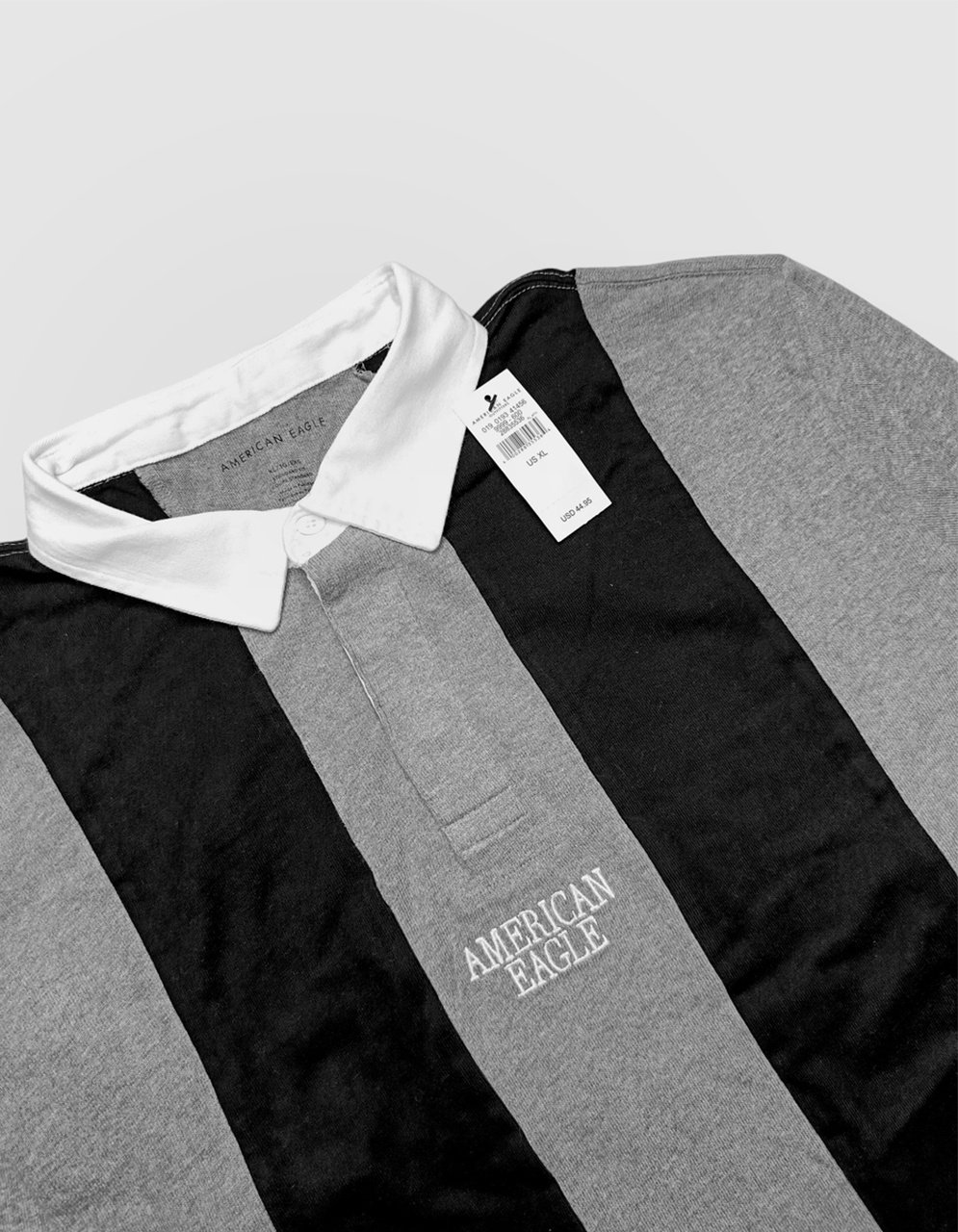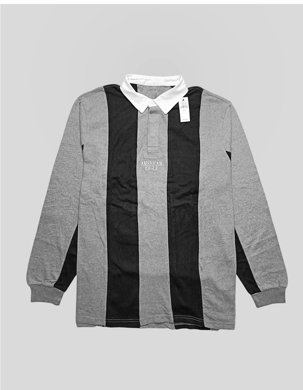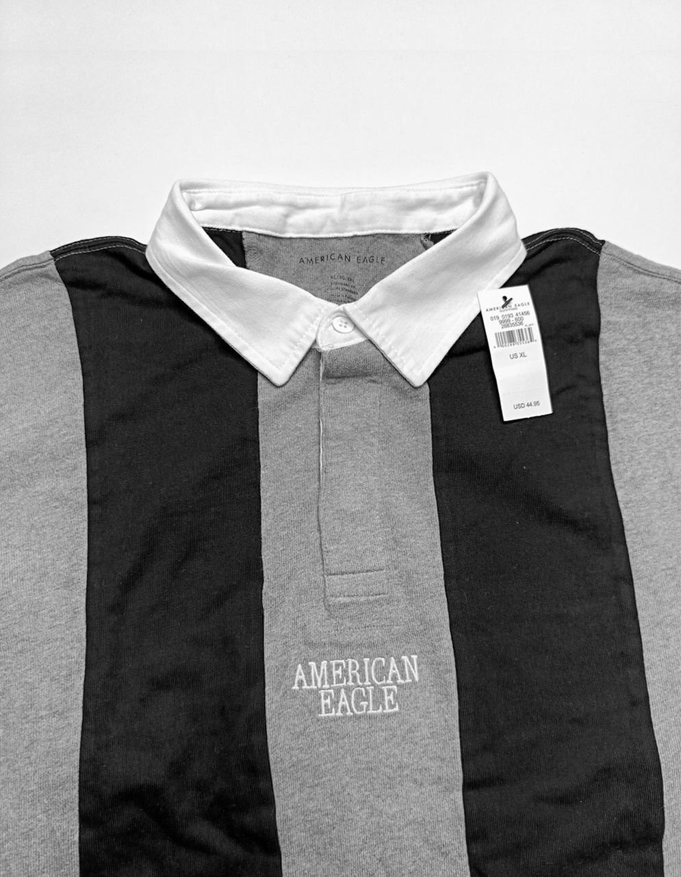 - تيشرت بولو من امريكان ايجل بخطوط طولية و شعار مطرز عالصدر بماتريال قطن هيدفيك فالشتاء صنع فى باكستان