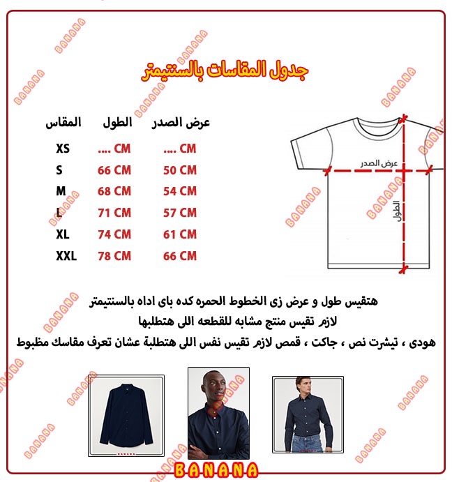 جدول مقاسات هذا الموديل